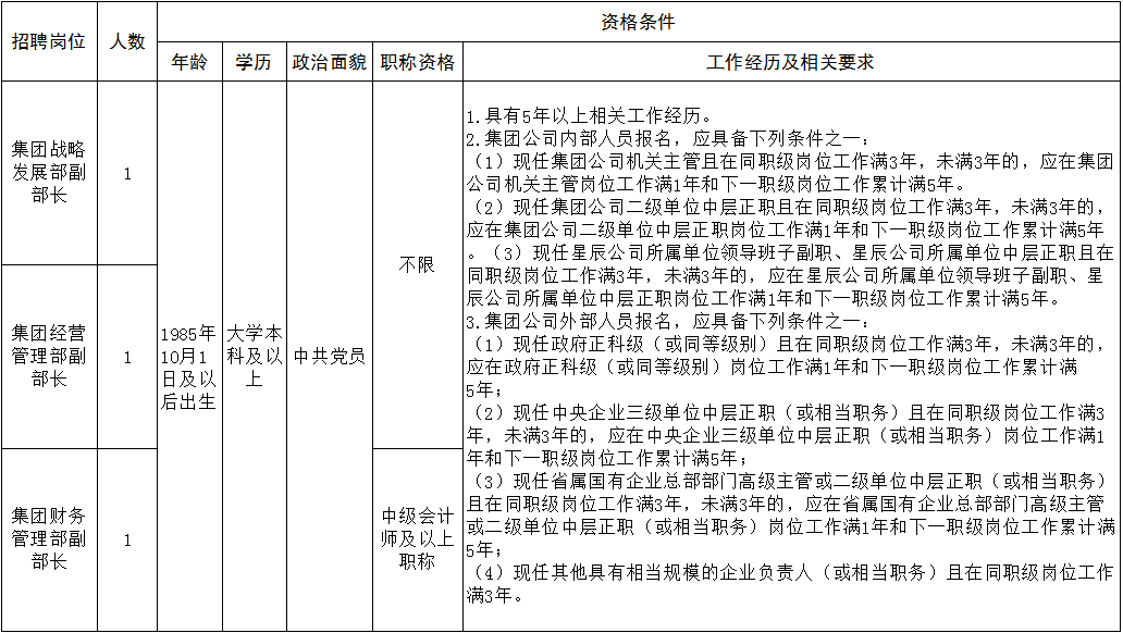 现根据工作需要,经研究,面向集团公司内外部公开招聘集团公司机关部门副职3名。现将有关事项公告如下: